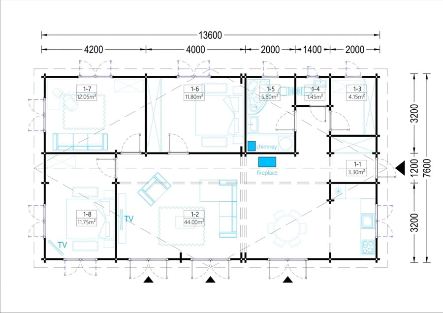 Modelul Casa din lemn FAGARAS (66 mm) 103 mp, are o suprafață care vă permite să găzduiți câțiva prieteni sau să petreceți momente prietenoase cu familia.