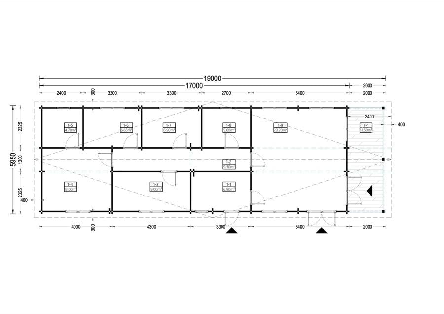 Casa din lemn HATEG (66 mm), 6×19 m 114 m²