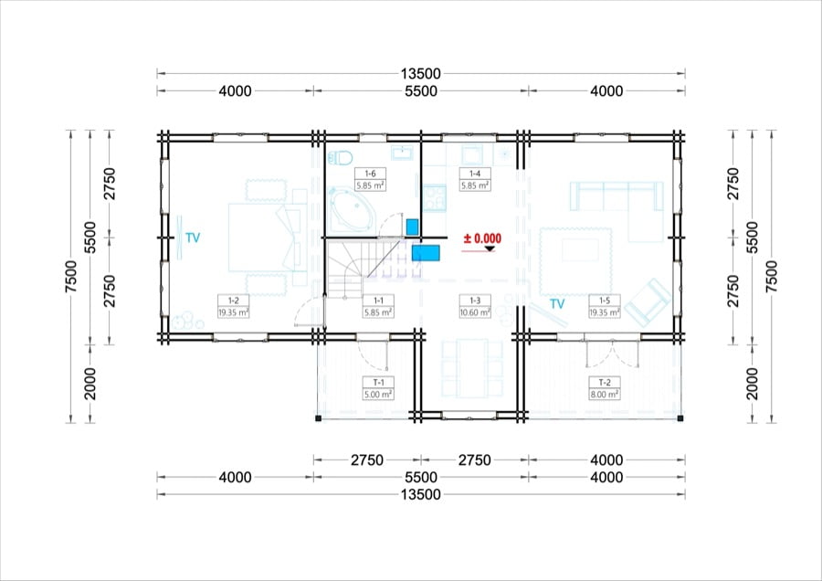 Punctele forte ale modelului Casa din lemn MUNTENIA (44+44 mm) 113 m² + 13 m² terasa sunt: