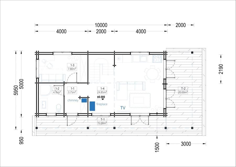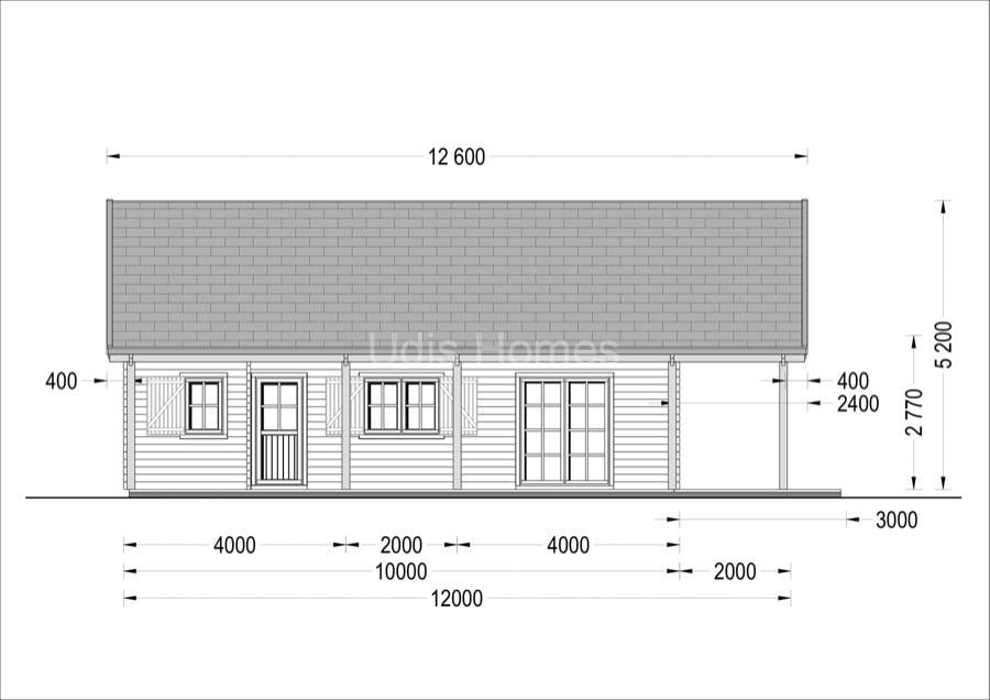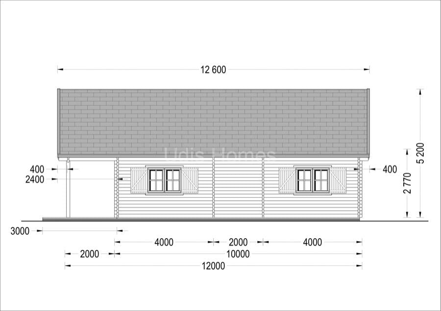 Casa din lemn izolata PALTINIS (44+44 mm) 100 mp + terasa 35 mp