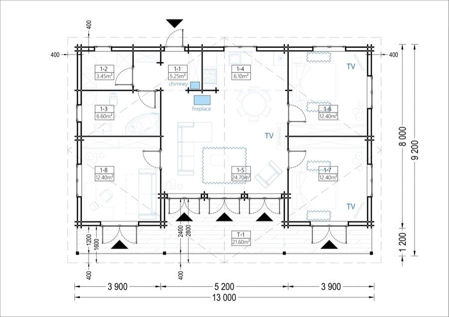 Punctele forte ale modelului Casa din lemn SNAGOV (44+44 mm), 100 m² + terasa de 20 m²: