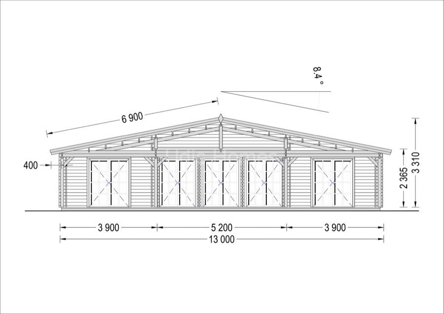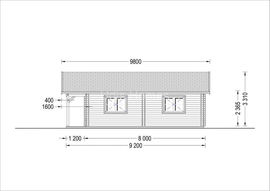 Casa izolata din lemn SNAGOV (44+44 mm), 100 m² + terasa de 20 m²