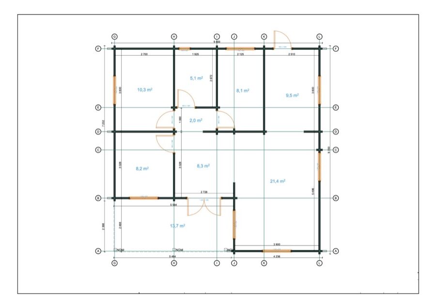 Casa din molid nordic ARGEŞ 81 m² + 13.7 m² terasa cu 3 dormitoare