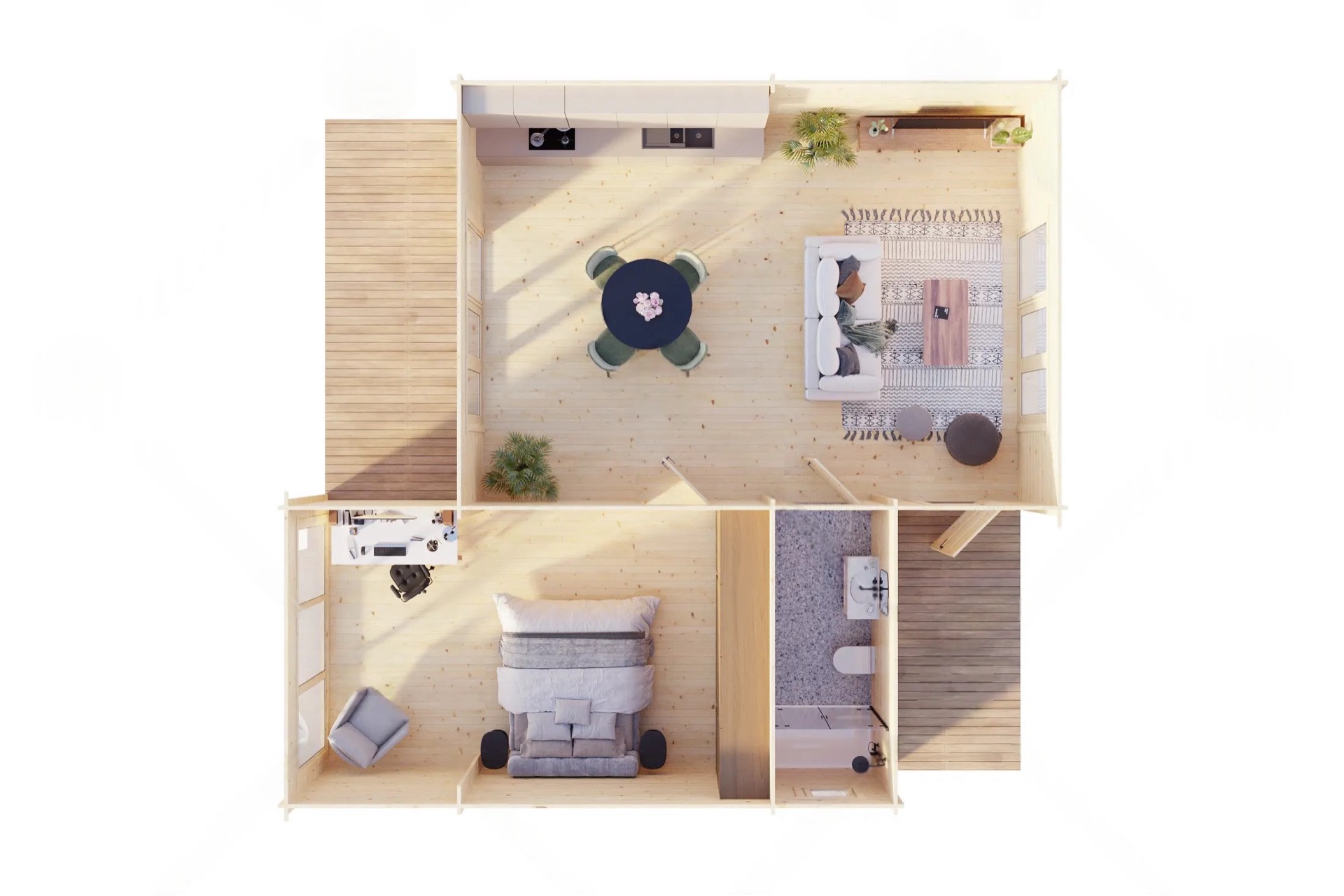 Toate casele și casuțele noastre sunt echipate cu o podea groasă de 20 mm. Doar garajele sunt livrate fără podea.