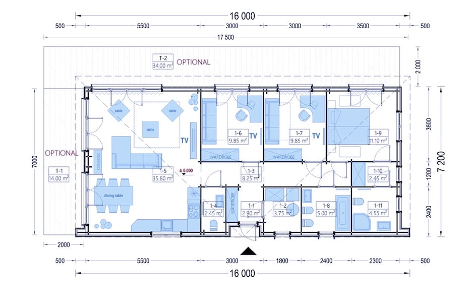 Casă izolată din lemn RITA (44 mm + placare) 115 m².