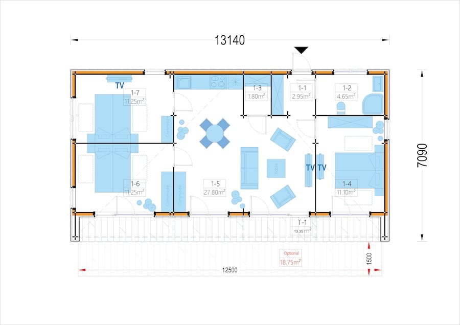 Casa izolată din lemn LIZA 3 80m² + 13m² veranda cu 3 dormitoare
