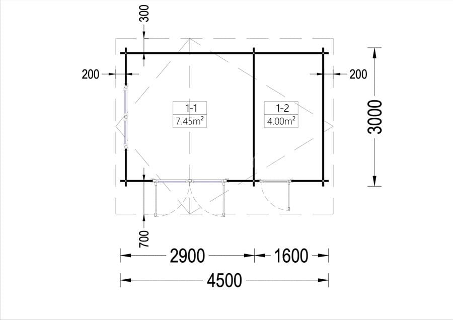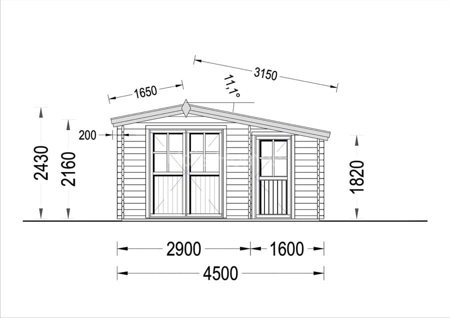 Casuta de gradina din lemn VRABIE (34 mm), 4,5×3 m, 13 m²