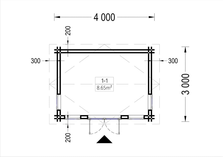 Casuta din lemn de grădina IZVOR (44+44 mm) 4x3 m 12 m², care are pereți dubli, precum și un acoperiș din lemn cu două straturi, ambele cu o cavitate între cele două plăci. Acoperișul este întărit pentru o rezistență mai mare a structurii.