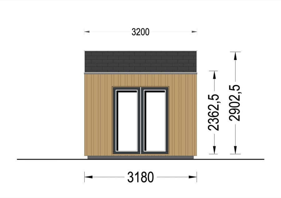 Casuta din lemn EVA (34 mm + placare) 4×3 m 12 m²