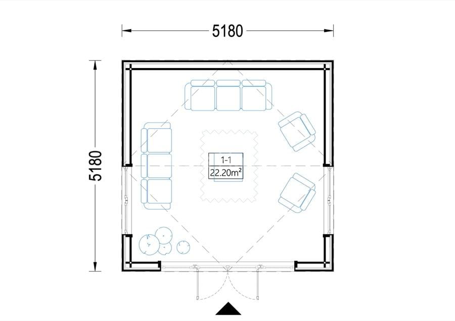 Punctele forte ale modelului Casuta din lemn GARDENIA ( 34 mm + placare) 5x5 m 25 m²