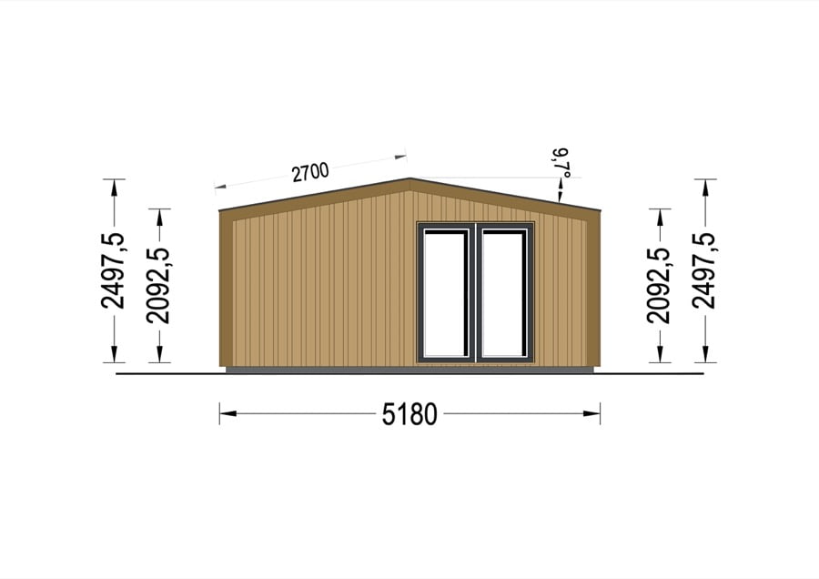 Casuta din lemn GARDENIA ( 34 mm + placare) 5×5 m 25 m²