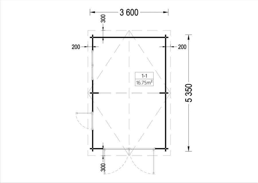 Garaj din lemn (44 mm) 3.6×5.35 m 20 m²